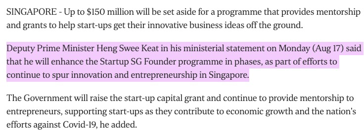 新加坡政府將撥款1.5億新元用于一個(gè)項(xiàng)目,該項(xiàng)目提供指導(dǎo)和資金,幫助初創(chuàng)企業(yè)將創(chuàng)新的商業(yè)理念付諸實(shí)踐。